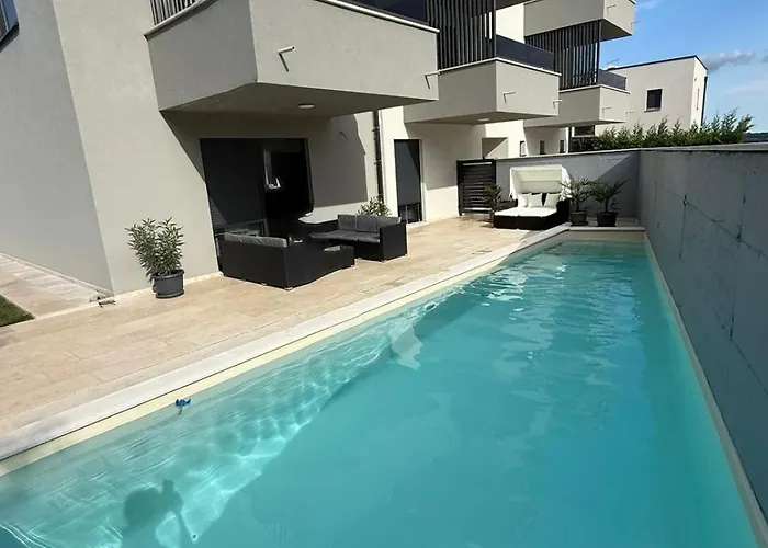 Το διαμέρισμα έχει θέα στην πισίνα από την βεράντα. Το διαμέρισμα Casa Bella διαθέτει ιδιωτική πισίνα για την χαλάρωση.